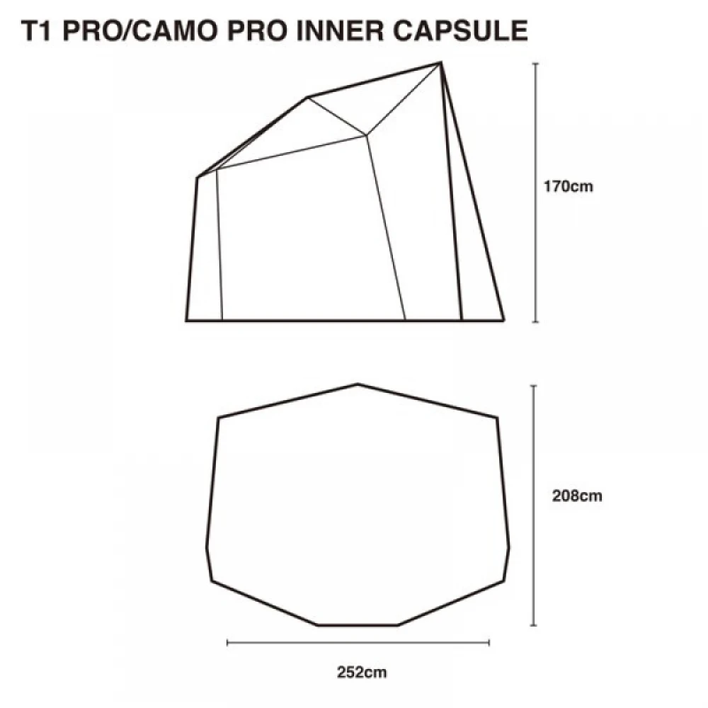 Capsule intérieure en maille : 170 × 252 × 208 cm (H × L × P)